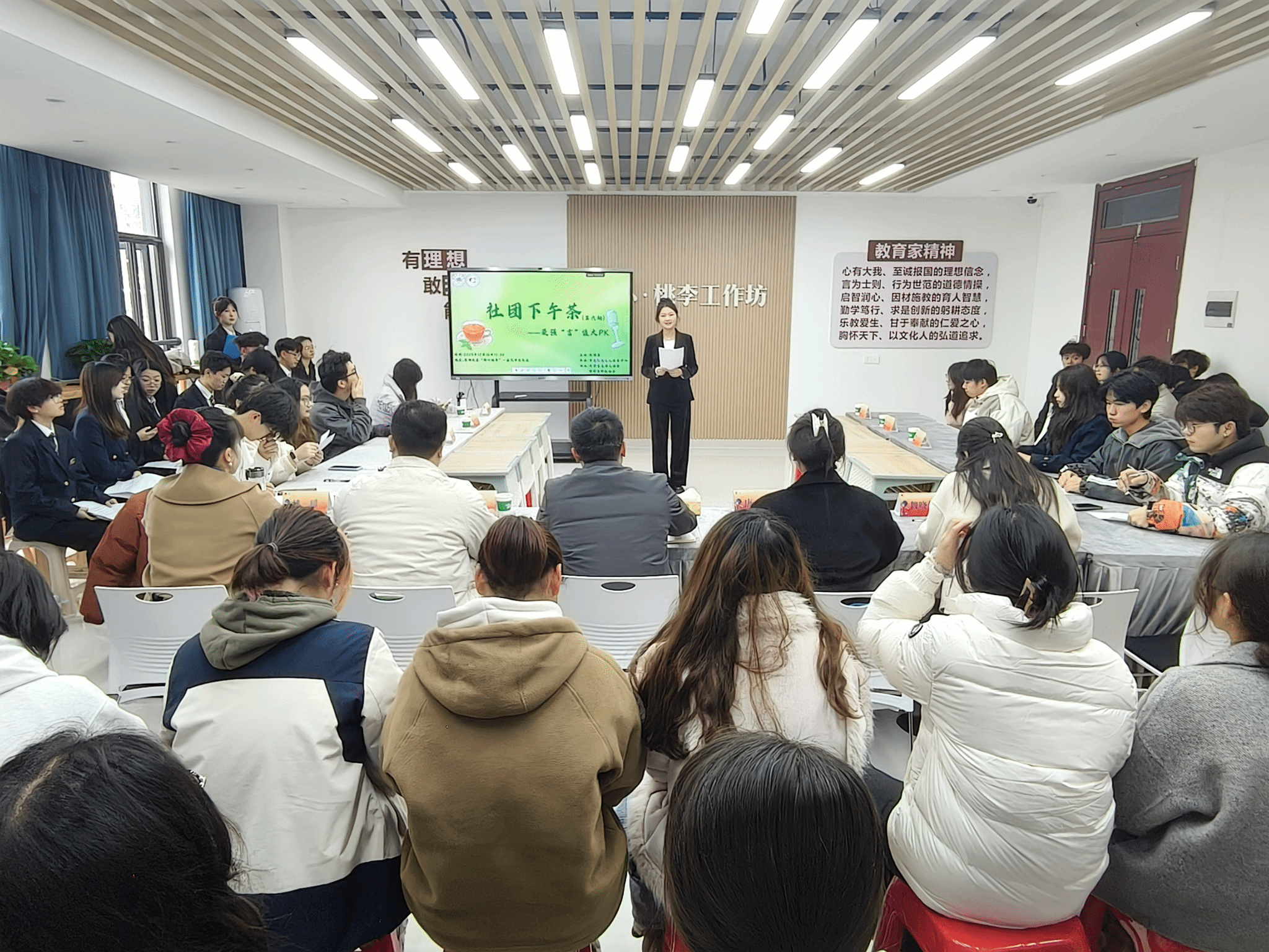 为聚焦青年学生成才需要、聚力提升语言表达能力,12月10日下午,由校团委主办、学生社团文化服务中心承办的第六期“社团下午茶”活动,在滨湖校区“润心桃李”一站式学生社区顺利开展。校团委副书记何磊,主持人协会指导老师唐银、演讲与辩论协会指导老师谷向阳、校团委姚瑶、魏晓倩以及来自各社团100余名同学参加活动。