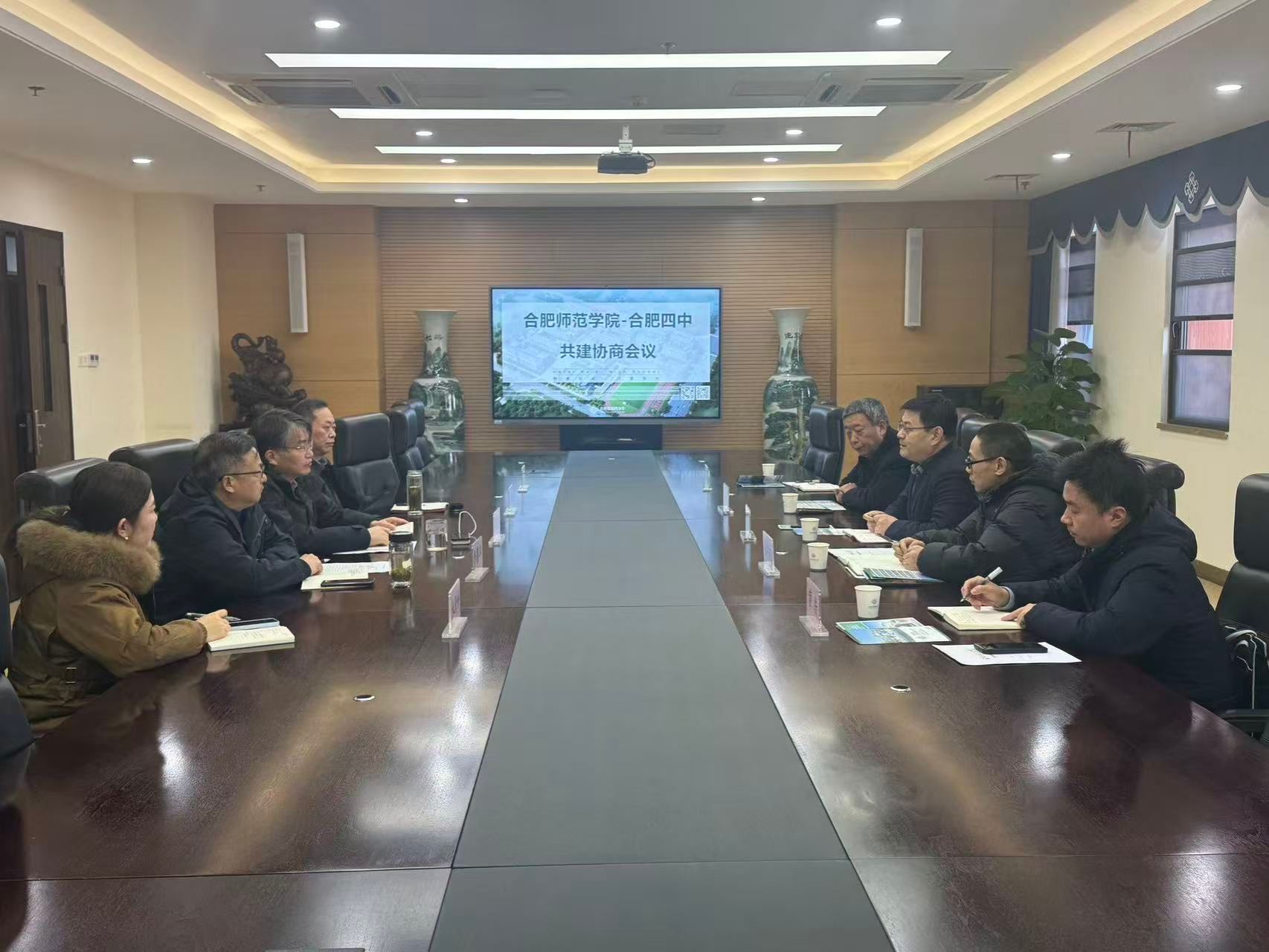 为推动高等教育与基础教育深度融合,构建“高校-高中”协同育人新格局,12月16日,学校研究生处、教务处等相关负责人一行与合肥市第四中学开展共建协商交流活动。合肥四中党委书记熊荣领、校长毛晓斌等领导班子成员参加了交流活动。