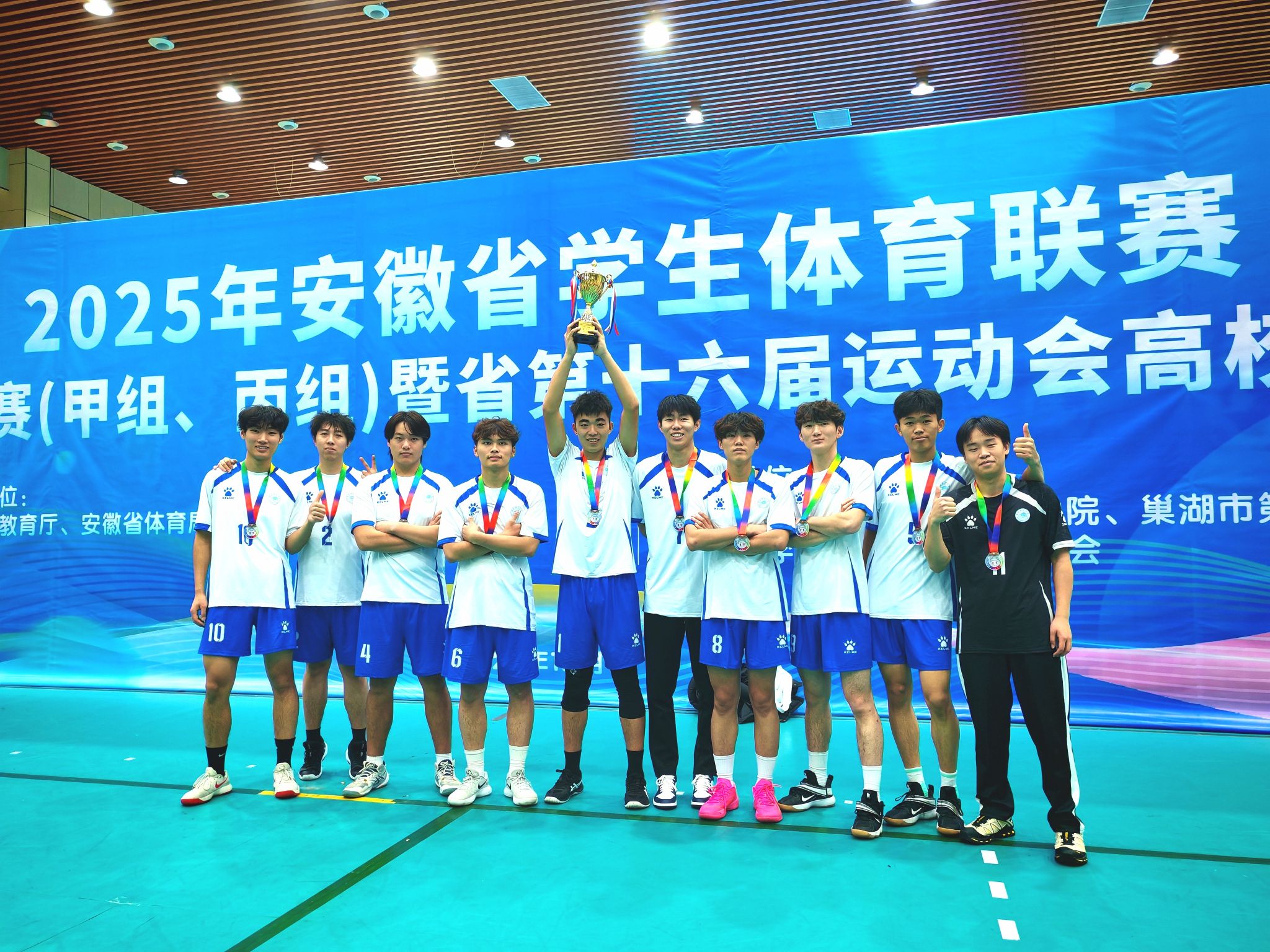 12月5日至10日,由安徽省教育厅、安徽省体育局联合主办,安徽省学校体育协会承办的2025年安徽省学生体育联赛大学生排球比赛暨省第十六届运动会高校部排球资格赛在巢湖市第二中学体育馆举行。吸引来自全省30所本科高校的33支代表队参加男子甲组、女子甲组和男子丙组、女子丙组等四个组别的比赛。beat365官网首次组队参加男子丙组的比赛,斩获男子丙组季军的好成绩。