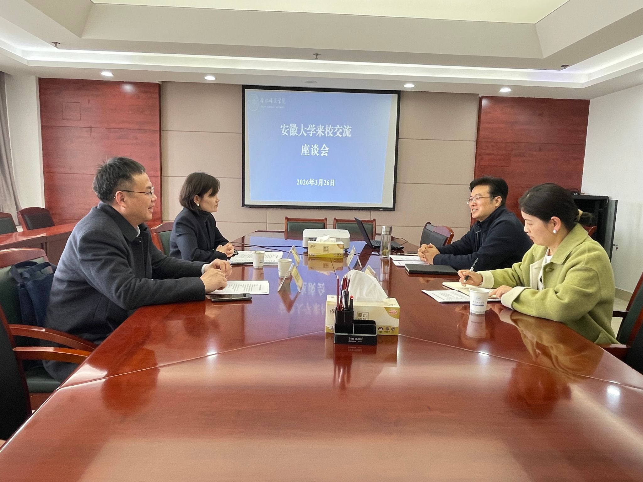 3月26日下午,安徽大学国内合作处郭文豪处长、任璐副处长一行来beat365官网交流座谈。会议由发展规划处(服务地方办)处长李大创主持,相关工作人员参加座谈会。