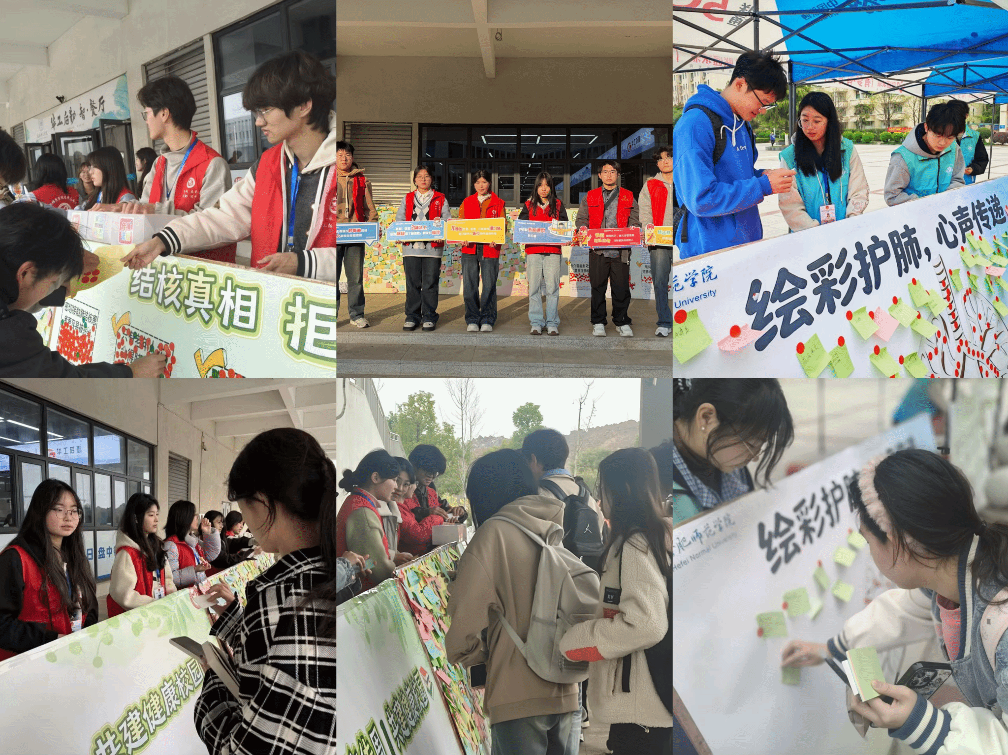 活动期间,青志联分别在滨湖校区桂园餐厅前广场、锦绣校区竹园广场设立宣传展台,开展线下志愿服务。志愿者详细讲解结核病的症状及传播方式,到场同学踊跃参与“绘彩护肺,心声传递”、“防痨有我,为爱承诺”、“结核真相,拒绝谣言”及防治结核主题漫画征集等系列活动,系统学习结核病防治知识,主动树立健康防护理念,切实将健康校园建设的理念转化为师生的自觉行动。