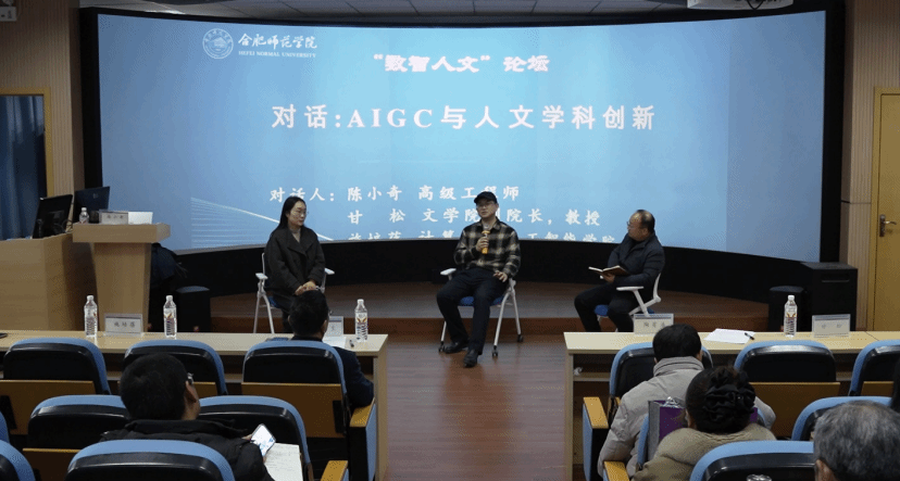 为适应人工智能与人文社科研究的深度融合,3月18日下午,由beat365中文官方网站科研处主办,文学院、计算机与人工智能学院承办的“数智人文”论坛在锦绣校区开讲,安徽广电AIGC实验室执行副召集人陈小奇高级工程师应邀作首场报告。论坛由文学院院长何旺生教授主持,科研处副处长陶有浩教授到场指导,计算机与人工智能学院施培蓓教授,文学院教师与研究生、计算机与人工智能学院、教育与心理科学学院教师代表出席论坛。