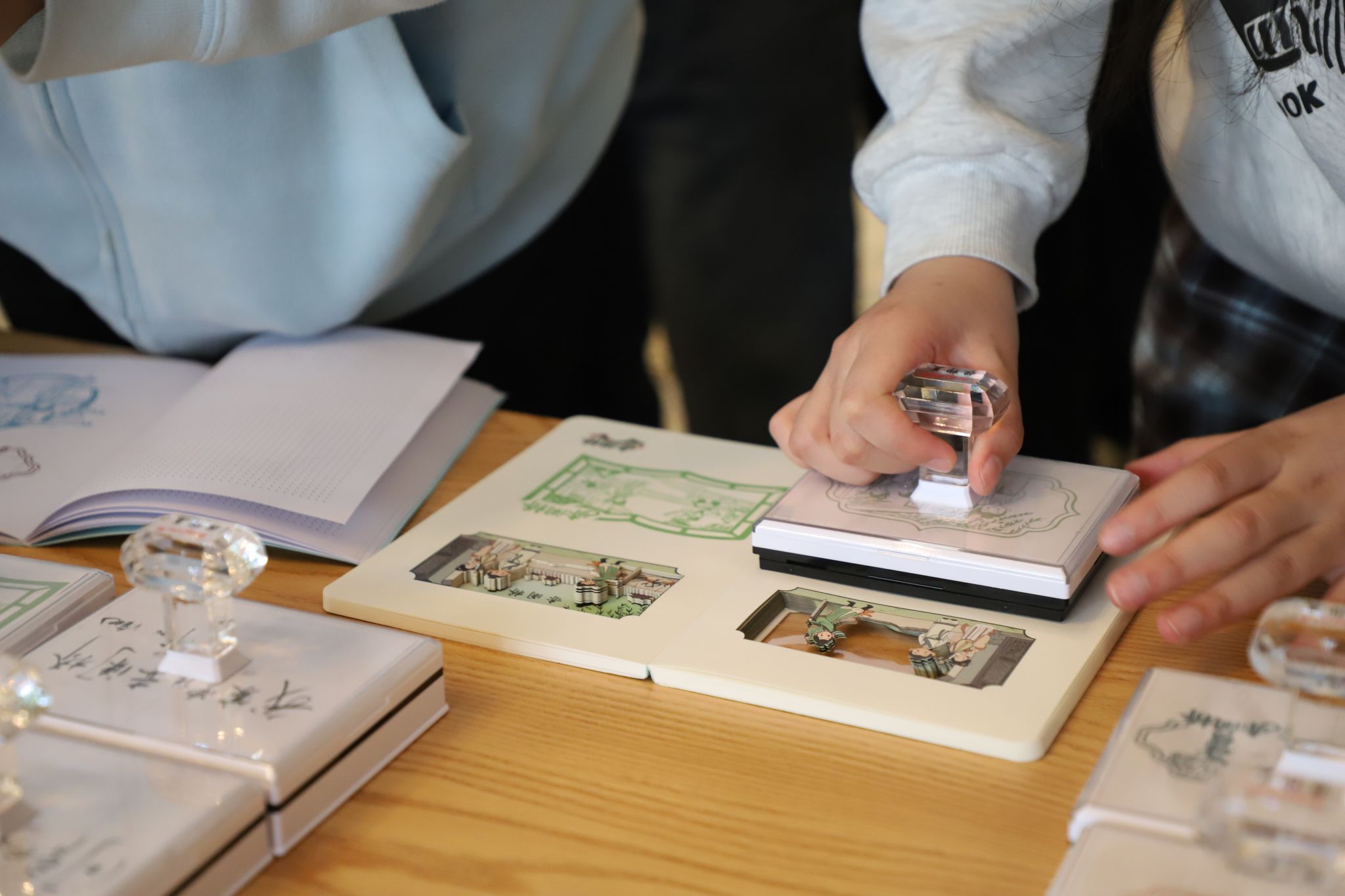 展台前排起了长队,学生们拿着手账、明信片,甚至空白纸张,耐心地等待,一枚枚精致的印章,赤阑桥、杨柳、琴箫、琵琶……42枚印章依次印下,一段藏在宋词里的合肥往事,在方寸之间被徐徐展开,变得可触可感,不仅让师生“读”到了赤阑桥,也让合肥这座城市的文旅名片有了更具象、更年轻的表达方式。
