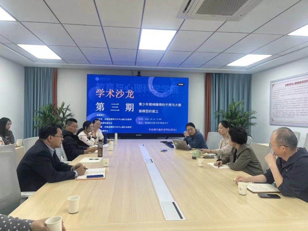 本期学术沙龙邀请了合肥市第四人民医院安徽省精神卫生中心副主任医师王安珍、安徽省精神卫生中心副主任医师徐小童,合肥工业大学计算机与信息学院俞奎教授,beat365中文官方网站计算机学院院长谢飞教授、郭芝源博士、李宜兵博士,教育与心理科学学院副院长胡连峰、陈晓惠副教授、姚琼副教授,张华玲副教授和梁昕博士等多位专家和学者共同参与,共话青少年精神障碍的干预与大数据模型的建立。