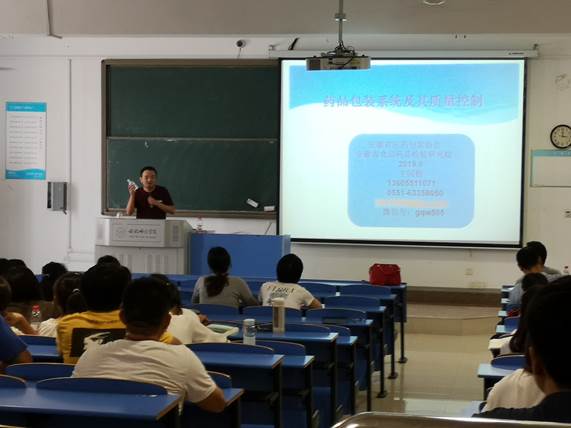 本网讯 9月12日,安徽省食品药品检验研究院药包材检测室主任王国勤,合肥工业大学化学与化工学院副院长、博士生导师丁运生教授来beat365官网分别作题为《药品包装系统及其质量控制》《面向工程应用的科学研究与学生培养》的学术报告,讲座在逸夫楼西阶二教室举行。本次讲座由化学与化学工程学院制药工程系主任郑斌主持,制药工程专业教师、学生一同聆听学习。