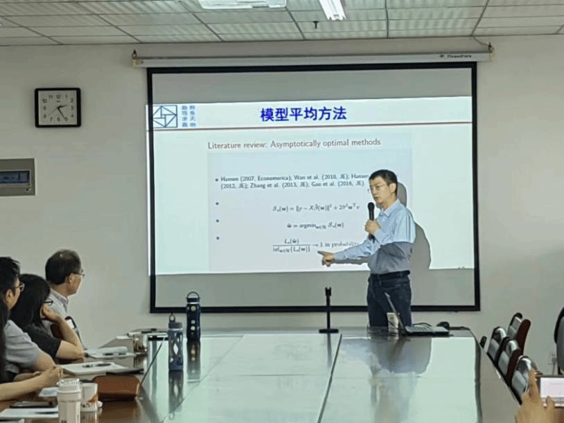 报告会上,张新雨研究员首先以时间序列分析为背景,介绍了统计学中常见的预测方法,如线性回归、传统机器学习和深度学习等,在此基础上介绍了模型平均理论,并通过航空客运需求预测、旅游业的影响预测等案例阐述了模型平均理论在统计预测中的重要应用。此外,张新雨研究员还介绍了可预测性的研究背景和相关概念,给出了可预测性分析方法。