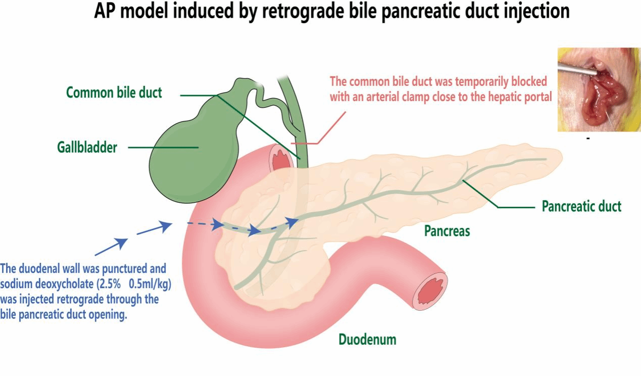 图 1 逆行胆胰管注射致急性胰腺炎模型