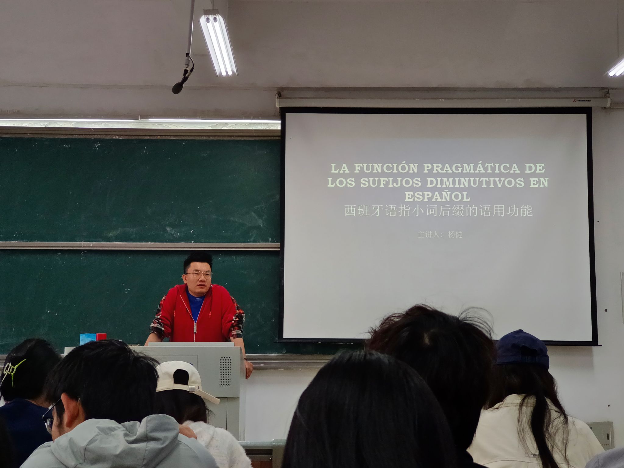 杨健博士详细介绍了西班牙语指小词后缀的概念、评价后缀的分类、常见指小词后缀及其使用国家或区域、指小词后缀的语法及语义特点以及指小词后缀的语用功能。他同时还强调,指小词后缀不仅仅用于表达事物的“小”或“少”,更重要的是其所携带的丰富情感色彩,在实际交流中具有明显的语用功能,例如表达亲昵、委婉、讽刺等多种情绪态度。