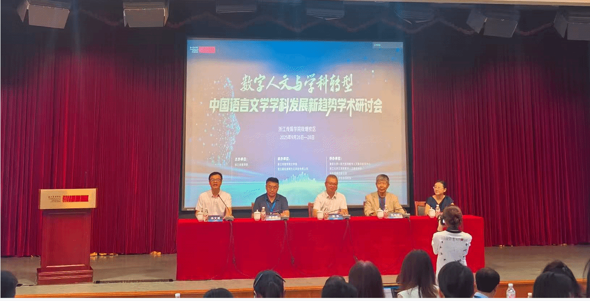 2025年9月26日至28日,由浙江传媒学院主办、浙江传媒学院文学院与浙江越生春晖文化科技有限公司承办、数字人文专业发展联盟等单位协办的“数字人文与学科转型:中国语言文学学科发展新趋势”学术研讨会在浙江传媒学院钱塘校区举办。来自北京大学、清华大学、浙江大学、复旦大学、华东师范大学、浙江科技大学等高等院校、研究机构和企事业单位的近130位专家、学者和行业代表参加了本次研讨会。文学院副院长甘松、中文系主任瞿华兵参会并作交流。