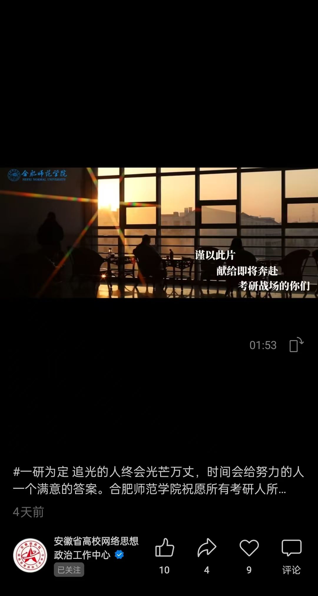【安徽省高校网络思想政治工作中心】安徽省高校网络思想政治工作中心视频号发布beat365官网考研主题视频