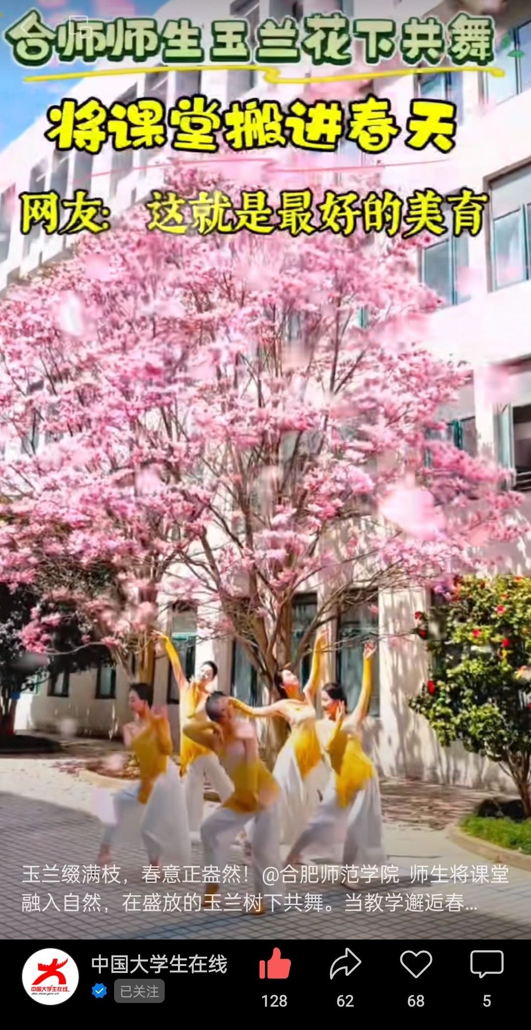 【中国大学生在线】玉兰花下师生共舞