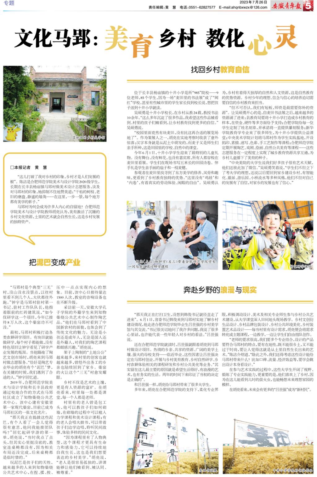 7月26日,《安徽青年报》(第2235期)以《文化马郢:美育乡村 教化心灵》为题,对此进行了报道。