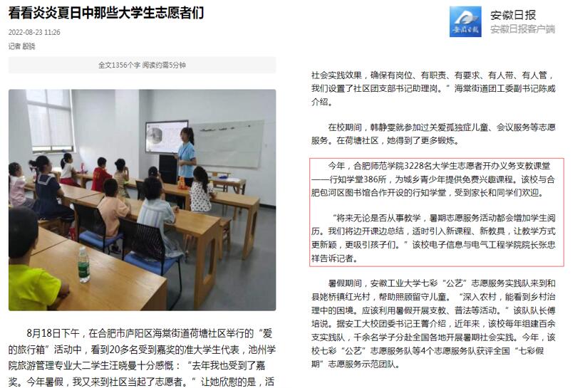 8月23日,安徽日报客户端对此进行了报道。(院团委)
