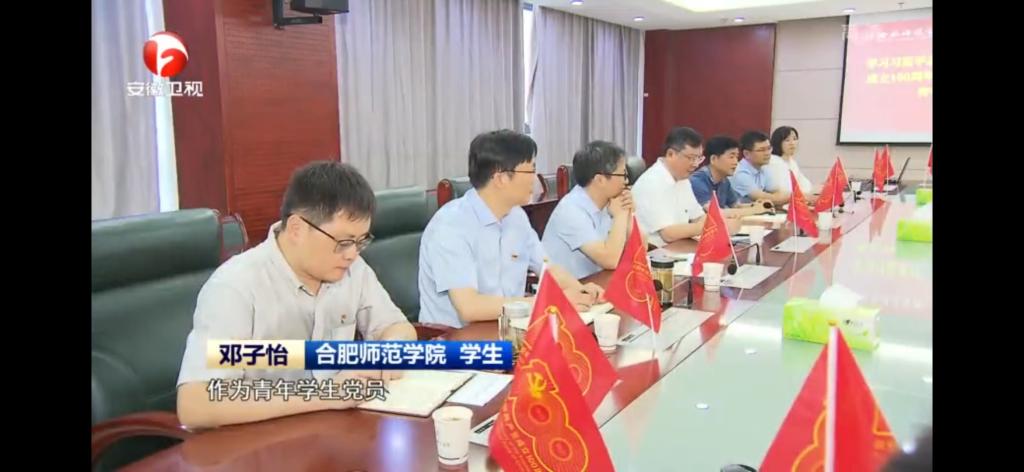 本网讯 7月1日上午,习近平总书记在庆祝中国共产党成立100周年大会上发表重要讲话。学院组织师生集体收看大会直播,并第一时间召开中心组学习会、学生座谈会学习习近平总书记“七一”重要讲话精神。安徽卫视“安徽新闻联播”栏目来校采访了党委书记徐成钢和文学院学生邓子怡,于7月2日和7月8日晚上分别播出了采访内容。(党史学习教育领导组办公室)