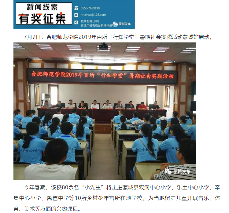 蒙城广播电视台“蒙城发布”、蒙城县人民政府网等对此进行了报道。(新闻中心)