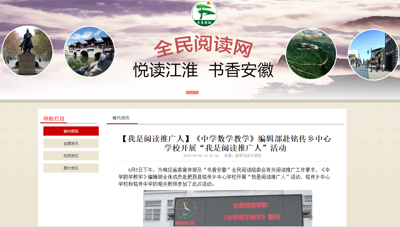 “书香安徽”全民阅读活动组委会官方网站“安徽全民阅读网”对此进行了报道。(新闻中心)