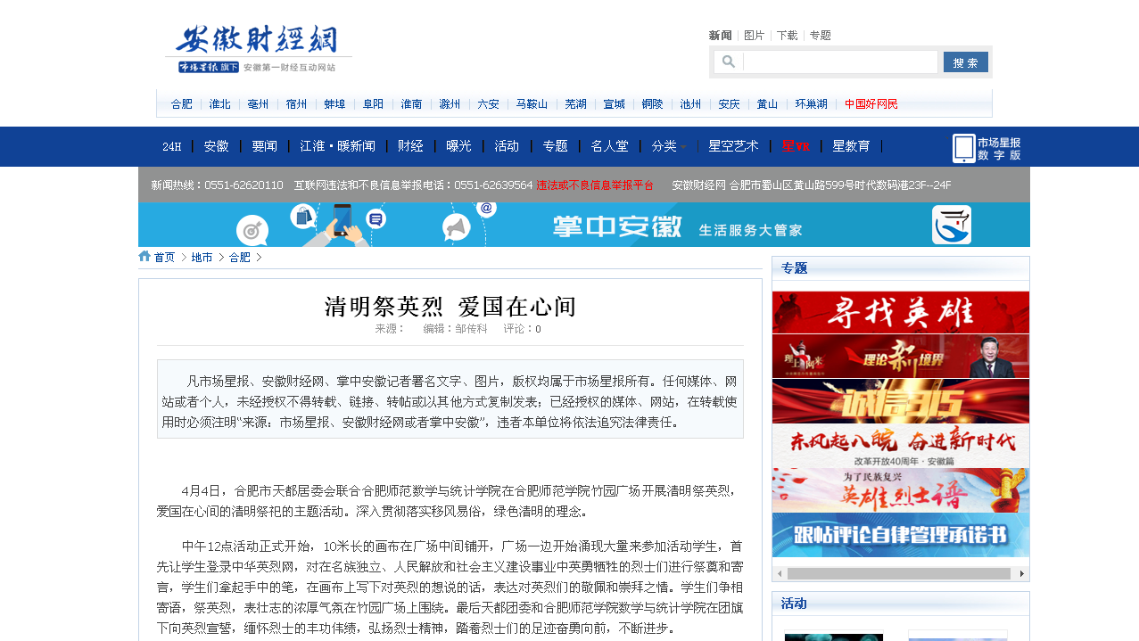 安徽财经网、万家热线等媒体对此活动进行了报道。(数学与统计学院)