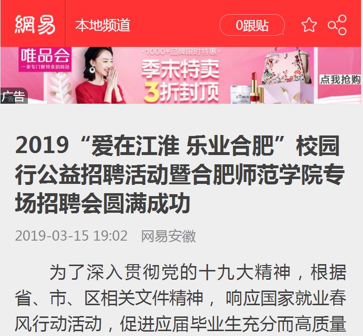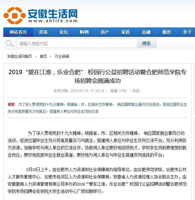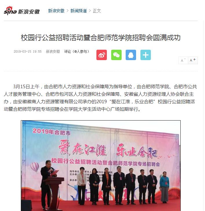 新浪网、网易、安徽生活网等媒体对此进行了报道。(就业创业工作处)