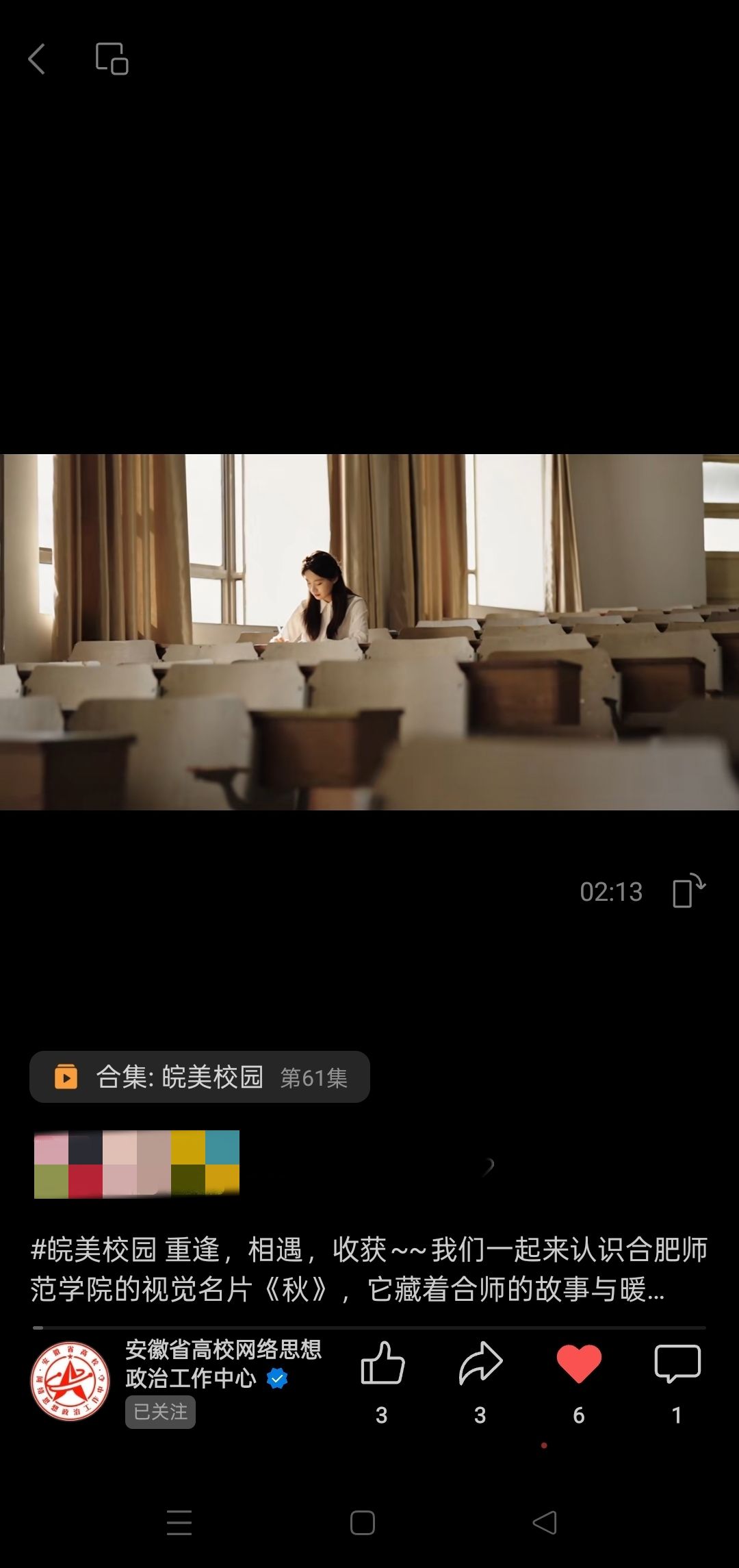11月17日,安徽省高校网络思想政治工作中心视频号发布我院合师视觉名片系列《秋》主题宣传片。(宣传部)