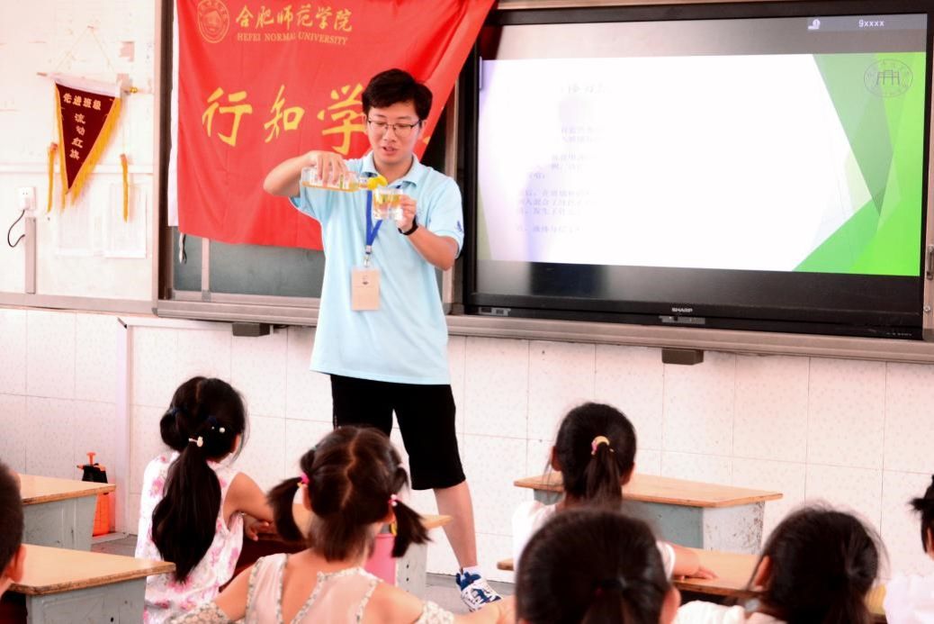 “既然选择了远方,便只顾风雨兼程。”进入合师的第一个学年,张欣奥就凭着一腔热血,回到家乡宣城市宣州区开办了行知学堂。对于大一新生而言,创办学堂绝非易事,办学前的组织建设工作便是向他们抛出的第一个难题,如何办一所符合标准的学堂?如何管理他们的教学队伍?又如何给学生们上课?这些都是需要考虑的问题,既琐碎,又毫无头绪。但张欣奥并不将它们视为畏途,他以青春有为承担起行知学堂行稳致远的船帆。纵有千难万难,他心中却有千计万计。张欣奥回忆起步阶段时还颇有些无奈“最开始我对如何开办学堂处于‘眉毛胡子一把抓’的迷茫状态,但为了学堂不在起步阶段夭折,我必须迎难而上,后来我想到了利用网络查找相关信息、建立管理制度、研讨课程设计等方法统筹学堂建设,总算是让学堂稳稳当当地开办起来了。”从招生宣传到开学布置,张欣奥带领团队成员不厌其烦地讨论、修改办学方案,夜以继日地沟通协调人员配备。频频删改的教学方案,记录着他们对教学的精心打磨;不断调整的管理制度,承载着他们对学堂的期望。张欣奥用实际行动践行了“建好一个学堂”的诺言。