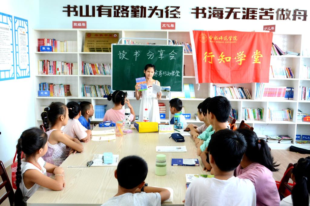 阜阳市颍东区口孜镇王庄、洪阳两村是学校脱贫攻坚定点帮扶村,文学院和经济与管理学院牵头在两个村开办行知学堂,10名“小先生”克服天气炎热、停电停水、粗茶淡饭等各种艰苦条件,开设安全教育、传统文化教育、音乐表演、美术手工等课程,服务留守儿童50余人。在开办学堂期间,“小先生”们利用课余时间向村民宣讲脱贫攻坚相关政策,并为村民提供政策答疑咨询服务,同时围绕“阜阳市颍东区洪杨村脱贫攻坚成效”开展调研,就洪杨村脱贫攻坚现状及进展、存在问题及相关对策进行田野调查。此外,教师教育学院汪昌华教授依托皖知行知学堂开办扶志课堂,在宣城、阜阳、合肥等地围绕脱贫攻坚、文化活动、新时代文明实践等主题开展理论宣讲,通过激发内生动力、提高文明素养、丰富文化生活、提升道德水平助力教育扶贫。