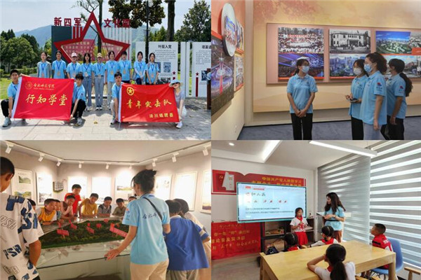 在学院定点帮扶村阜阳市颍东区口孜镇王庄村的开办的阜阳市王庄行知学堂开展“伟大的人民教育家——陶行知”特色课程,以人物事迹讲解、教育思想探讨、行知文化活动等形式引导小学员认识并了解陶行知生平,并将他的教育思想传递给小学员。马鞍山市含山县煦童行知学堂设置红色教育、创意美术、趣味英语、少儿服装表演、逻辑思维等多项课程与活动。池州市石台县矶滩乡行知学堂打造指导性教学模式,推出民俗文化、茶文化、理化小实验、党史故事等特色课程,并结合团队成员特长打造合作绘画、创意手工、唱响红歌等精品课程。黄山市祁门县横联行知学堂结合农村地区常见安全问题,开设了防火、防盗、防溺水、防雷击等安全教育课程。宣城市绩溪县瀛洲行知学堂开展“印象绩溪”特别活动,组织开展家训朗诵、“我眼中的绩溪”绘画展、徽雕艺术手工作品展及具有皖南特色的歌曲和舞蹈演绎。六安市霍邱县行知学堂结合团队成员专业特色和兴趣特长,开设了制作动植物标本、观察种子的萌发、识别植物的种类等自然科学课程以及异国风情、传统乐器、手工折纸等趣味课程。宣城市泾县行知学堂开展以“守正创新致青春,红色支教暖童心”为主题的行知学堂教育关爱活动,特色课程“红色故事我来讲”“红色板报我来画”“红色知识我知道”引导小学员展示讲述自己的爱国故事和民族情怀。宣城市绩溪县梧川行知学堂开展“重温红色文化,追忆革命道路”特色皖南红色文化教学活动,学员赴梧川旌绩边游击根据地革命纪念馆参观,并共同演唱由当地原创的战歌《革命皖南斗争歌》。亳州市涡阳行知学堂开展“书写‘红领巾’的新篇章”特别活动,先后开展少先队知识主题宣讲、“假如你是一颗种子”心理画等子活动。芜湖市南陵县五里行知学堂以“中国节日”为主题,向小学员讲解了建党日、国庆日、春节、航天日等节日的由来及历史渊源。