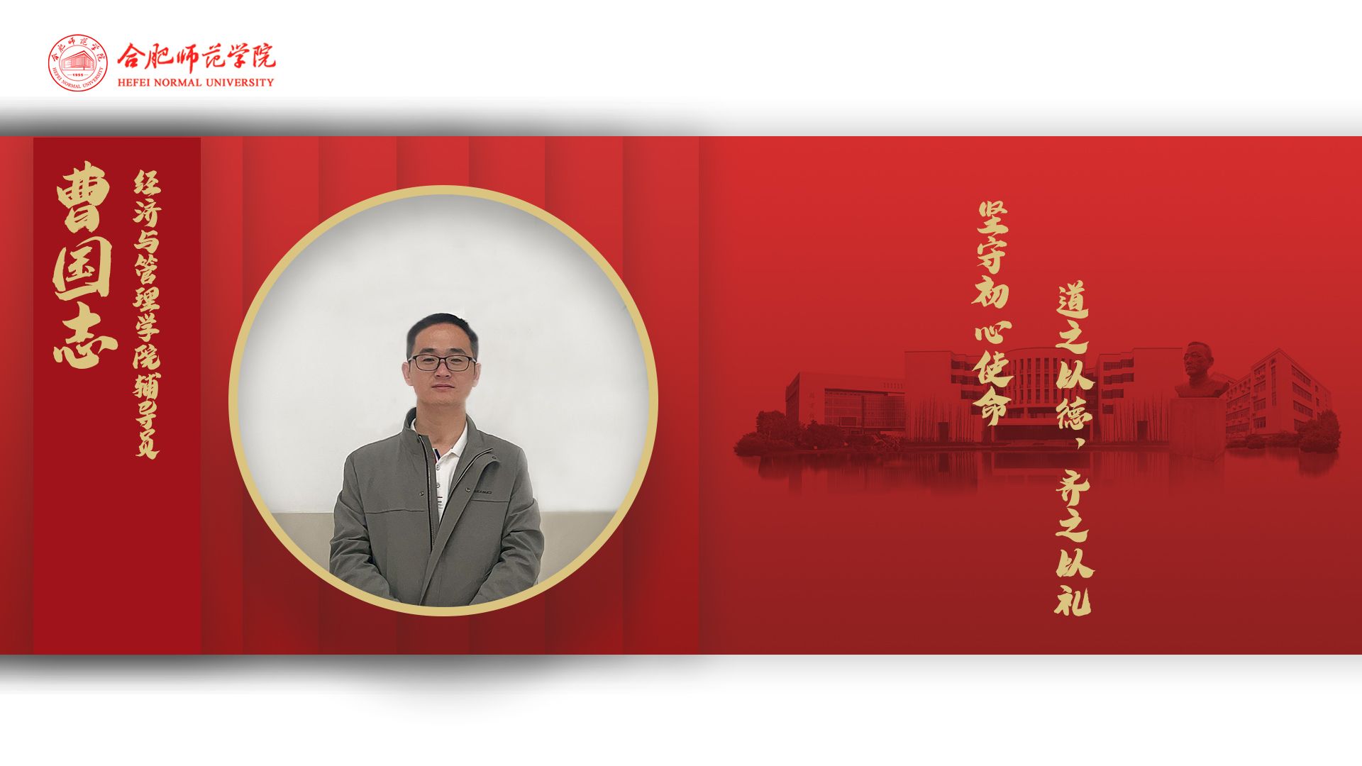 曹国志,经济与管理学院辅导员。在工作中,他一直落实立德树人根本任务,践行三全育人工作理念。所带学生多次参加行知学堂,所建学堂获得优秀行知学堂、示范行知学堂称号,所带班级两次评为校“十佳优良学风班级”。曾指导学生获安徽省大学生投融资大赛获一等奖,指导学生参加安徽省职业生涯规划大赛获铜奖等。工作期间多次获评行知学堂优秀指导老师,beat365中文官方网站优秀共产党员、优秀党务工作者、(所带支部)优秀基层党组织等荣誉称号。积极从事大学生思想政治教育理论研究,公开发表工作相关论文,获评安徽省辅导员优秀论文相关奖项。