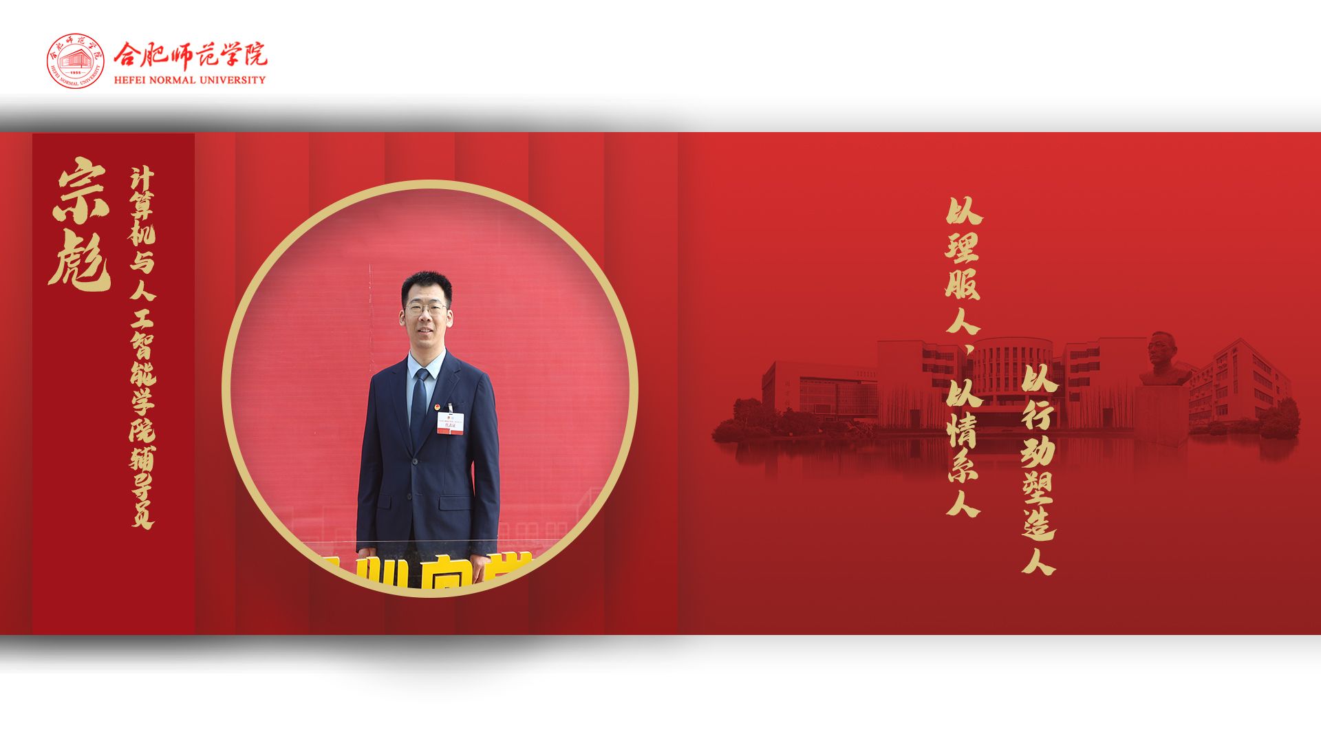 宗彪,男,汉族,中共党员,讲师,beat365中文官方网站专职辅导员、院团委书记。安徽省委讲师团专家库青年宣讲名师,安徽省青年宣讲团成员,安徽省青少年研究会第四届理事。曾获安徽省高校辅导员年度人物称号,安徽省辅导员素质能力大赛决赛三等奖,安徽省暑期“三下乡”社会实践先进个人等省级荣誉 7 项,校优秀共产党员、优秀辅导员、心理健康教育先进个人,就业工作先进个人等荣誉称号 17 项。发表思政论文7篇,主持和参与安徽高等学校人文社会科学研究重点项目共 2 项,作为核心成员参与安徽省高校思想政治能力提升计划项目和安徽省高校思想政治工作创新项目 2 项。所带学生荣获“安徽省大学生年度人物”等省级及以上表彰或竞赛 87 项,所带班级荣获全省“五四红旗团支部”。