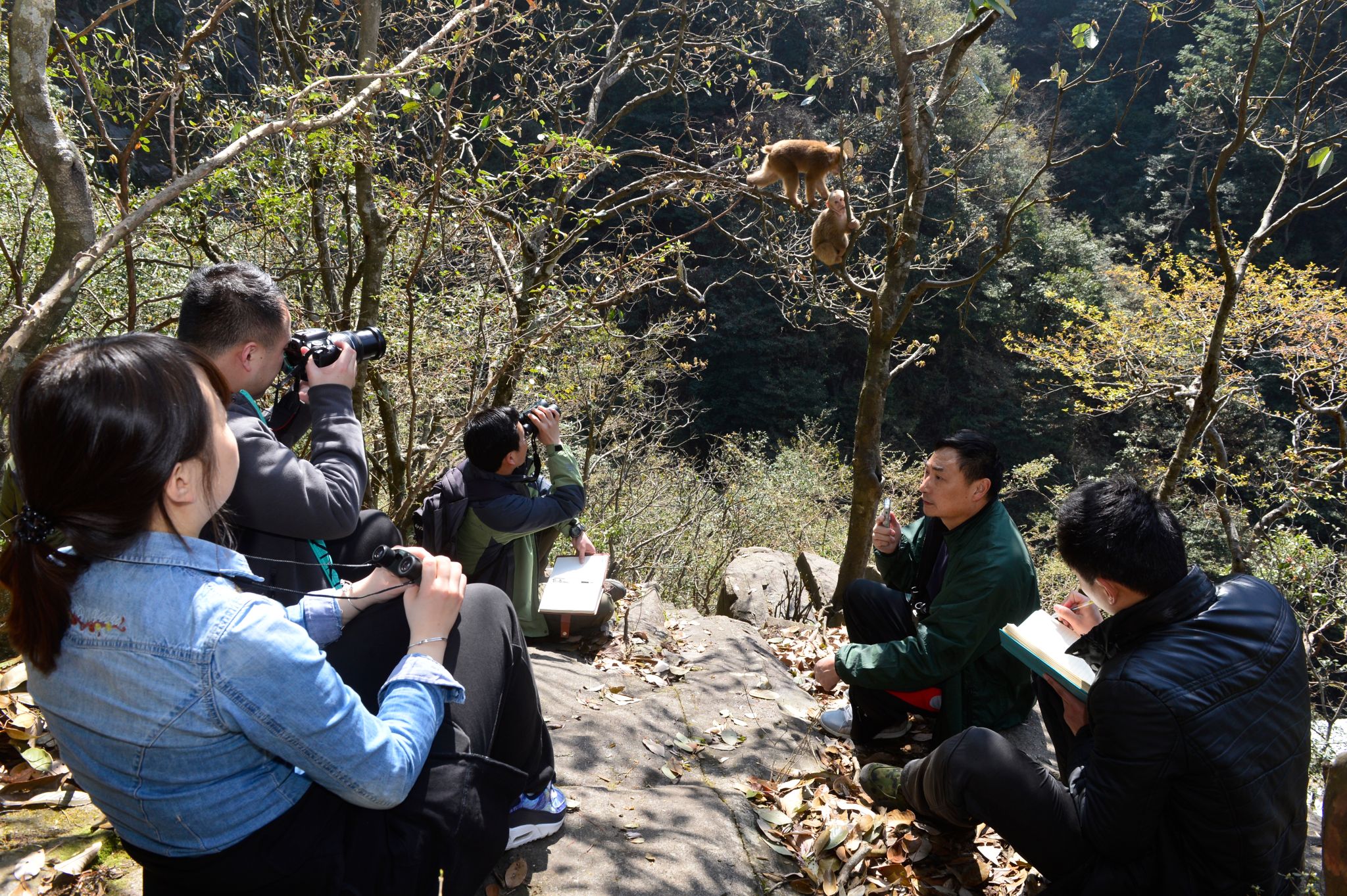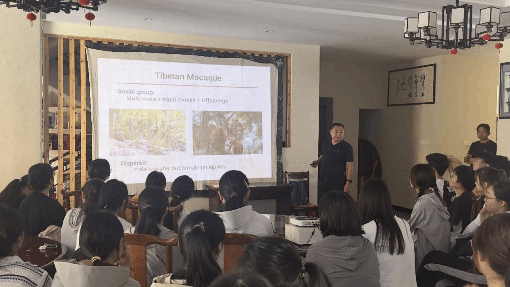 实地考察后,李进华给学生们作关于黄山短尾猴的学术报告