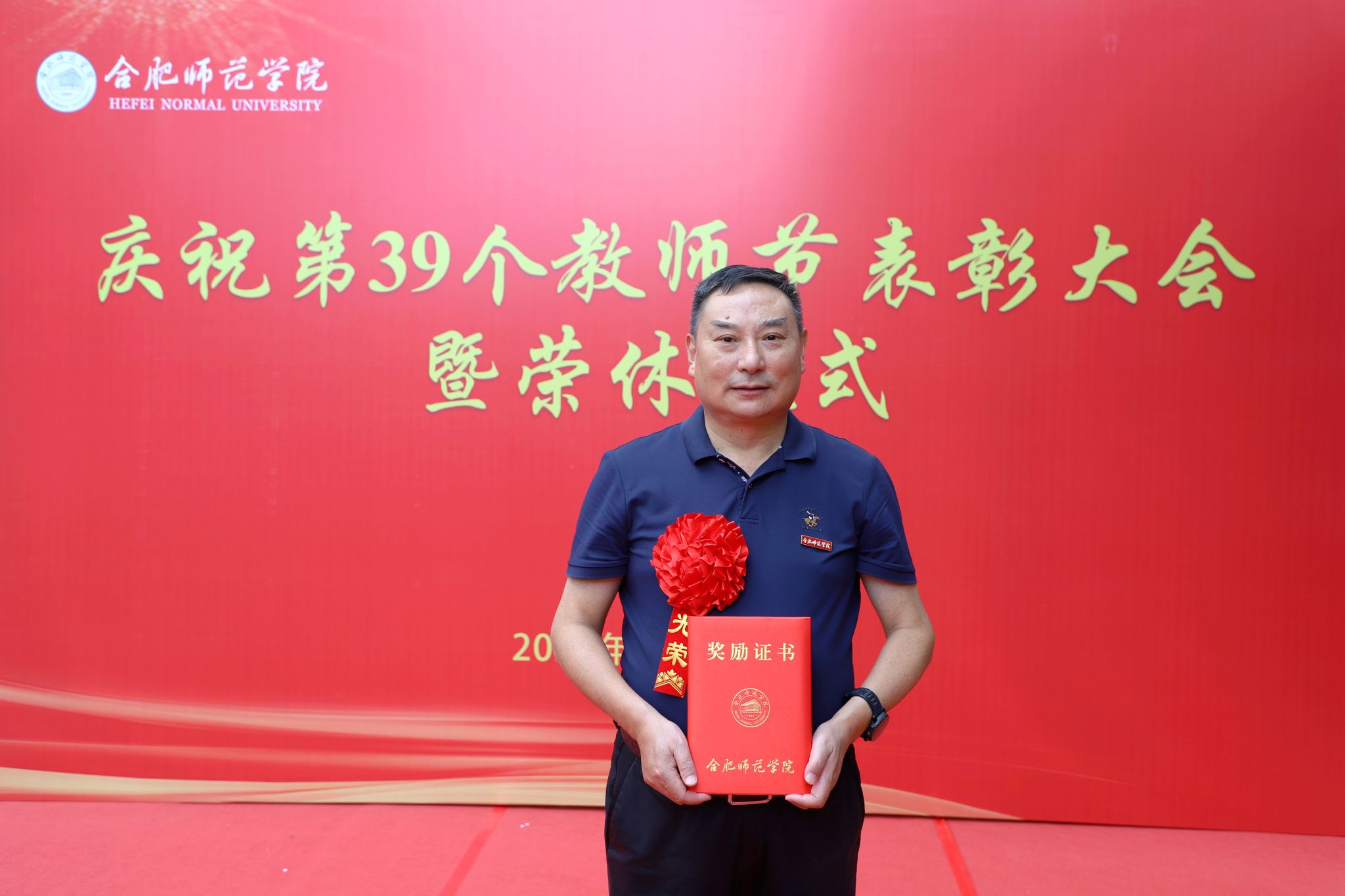 2023年9月,李进华在学校第39个教师节表彰大会上获多项奖励