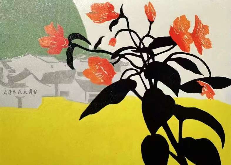 不同于常规的脱贫主题的叙事框架,郭益独辟蹊径,将镜头聚焦于精神与物质的双重蝶变——画面中,春意灼灼的映山红旁,“大湾农民大舞台”的标识棱角分明,细腻的刀法和灵动的构图勾勒出一幅乡村振兴的生动图景。