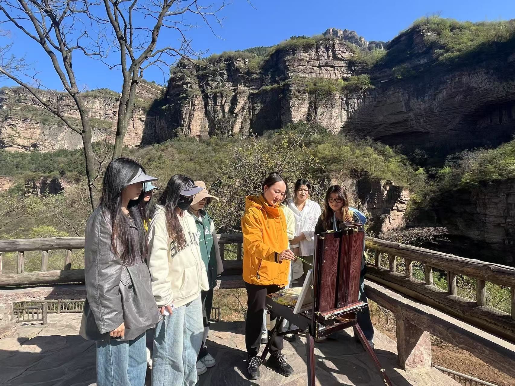 踏进太行山、黄山等大山深处的村落,郭益带着学生探寻自然与人文的融合。写生过程中,她鼓励学生从民居结构、村落布局、乡土风貌中汲取创作灵感,并通过作品再现地方文化特色。