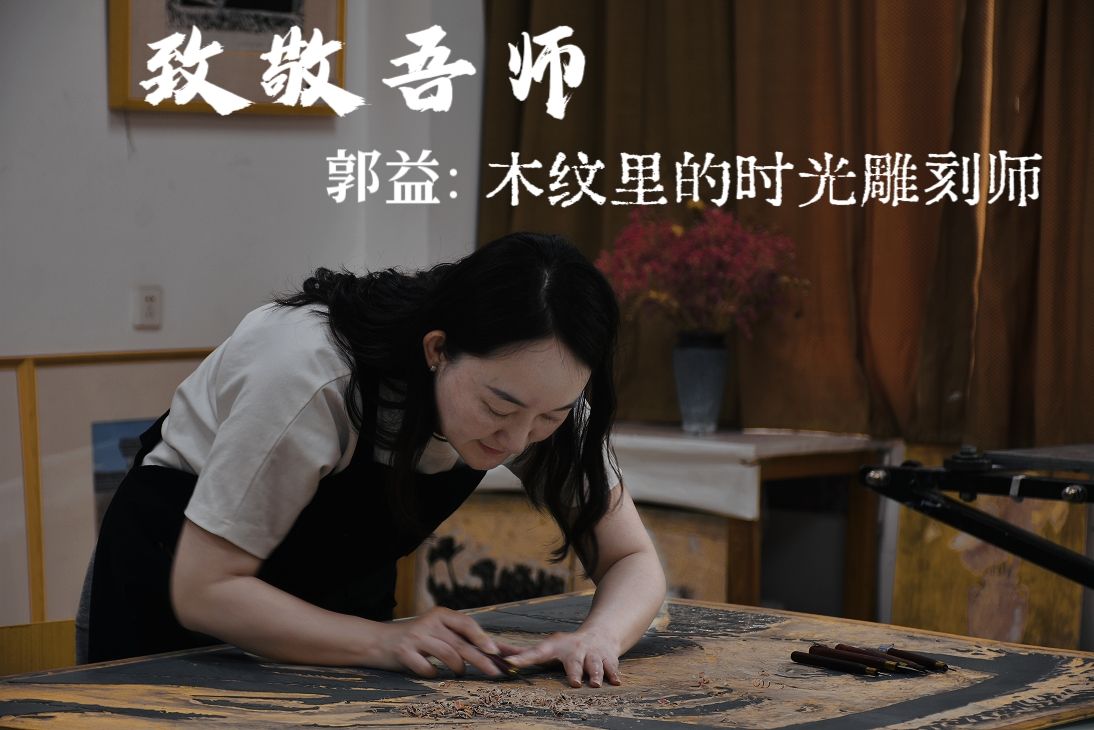 推开版画工作室的门,松节油与木屑的气息裹着暖黄光晕漫出来,郭益正在雕琢一方木板,旁边的丝网印刷台上晾着前几日完成的作品——这个画面,她已在时光中镌刻了整整十年。