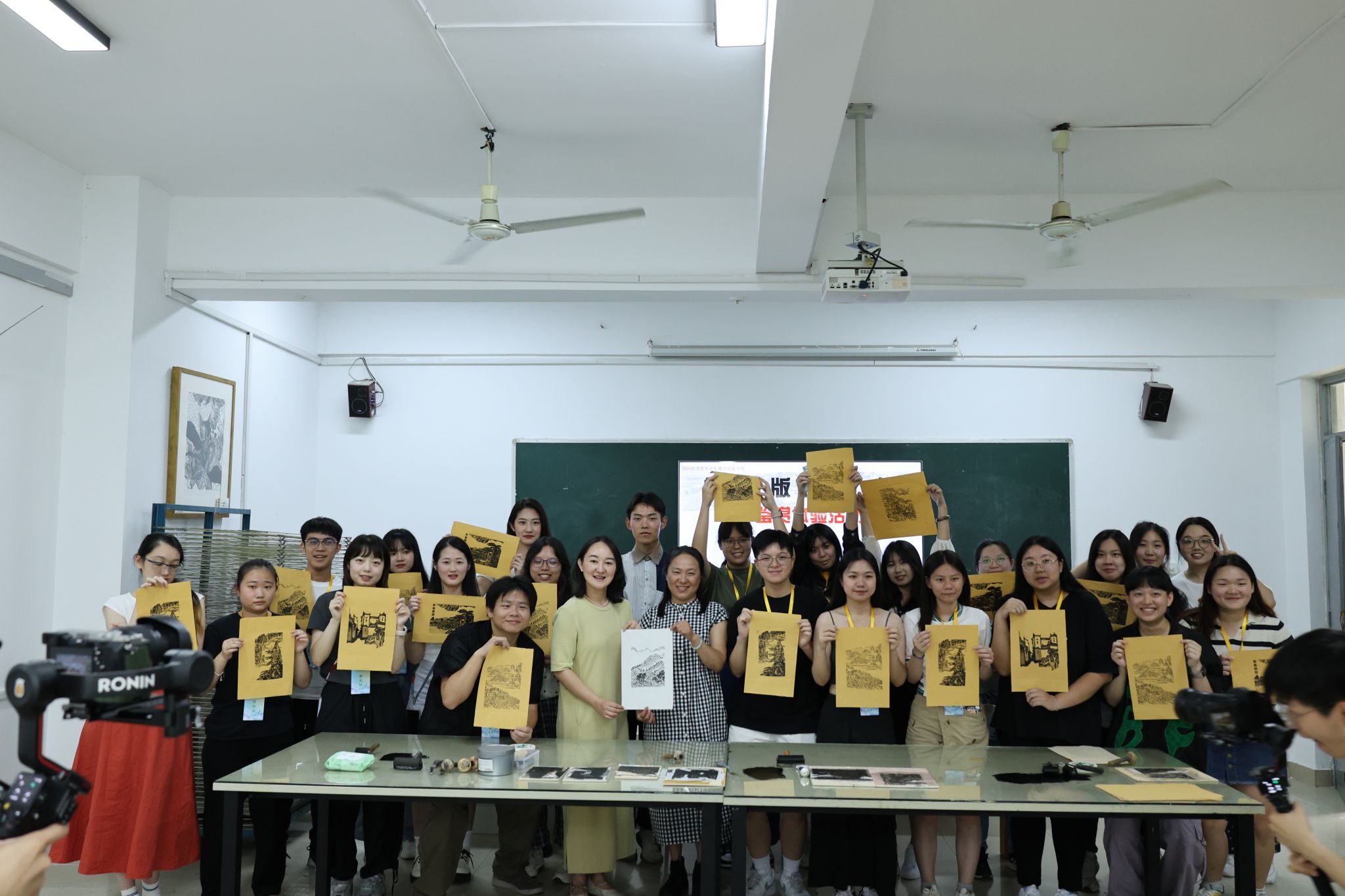 2024年盛夏,台湾大学生徽文化夏令营开营,67名来自宝岛的师生参访beat365中文官方网站安徽省中华优秀传统文化传承基地。郭益精心策划了一场“文化基因解码”课程,通过沉浸式工作坊开启了一场两岸间木刻版画的对话。