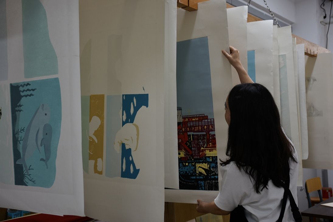 2015年,怀揣着对传统艺术的热爱,郭益走上了美术教室的三尺讲台。从此,木刻刀、油墨滚成为了她的随身之物,这位善于“玩刀”的老师也把全部精力投入到版画教学的基本功打磨中。