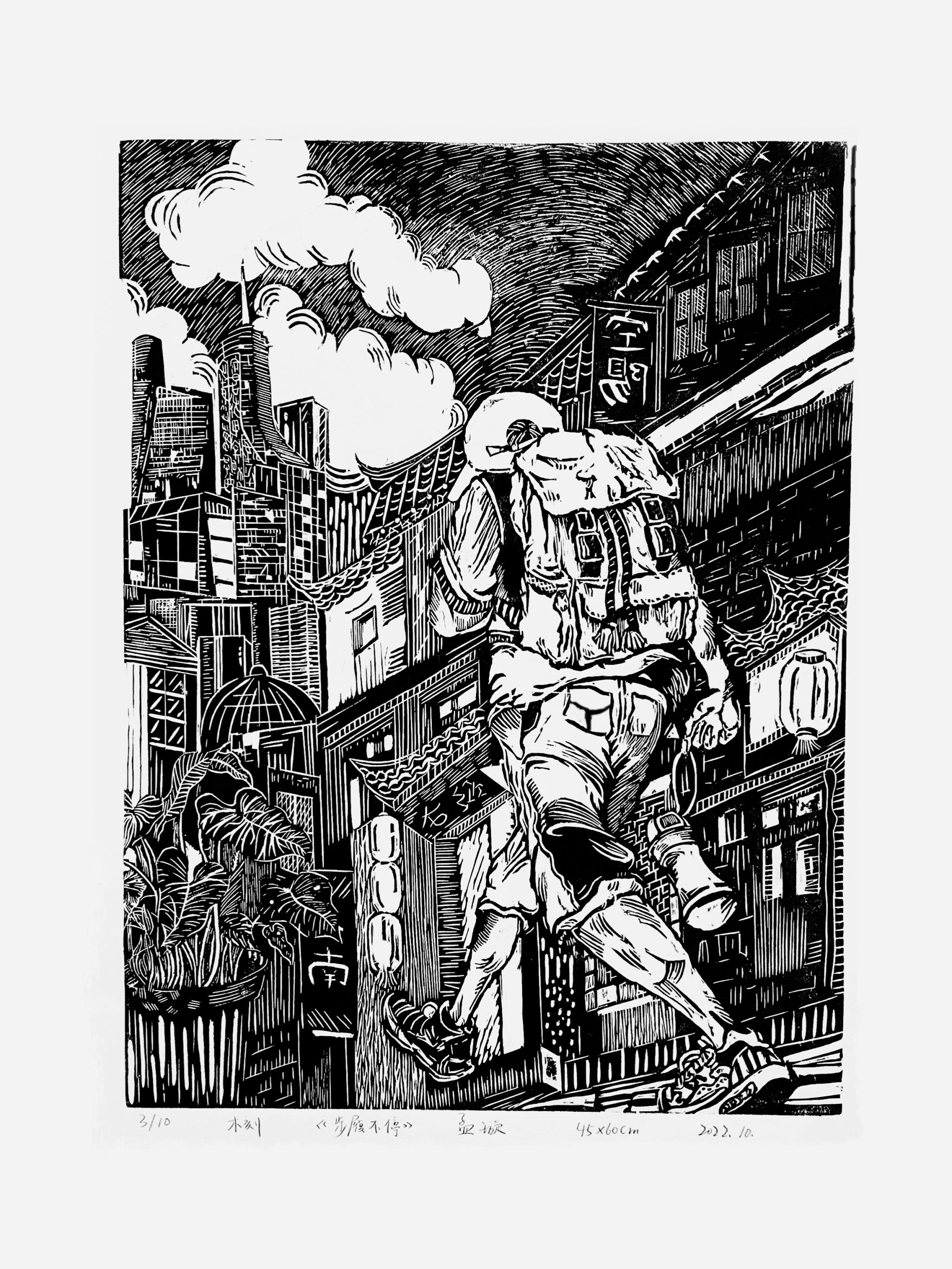“每一代人都是一把刻刀,在时光的木板上留下新的释义”,郭益将这些承载着岁月痕迹却又焕发新活力的文化基因,巧妙地融入到徽派版画创作之中。
