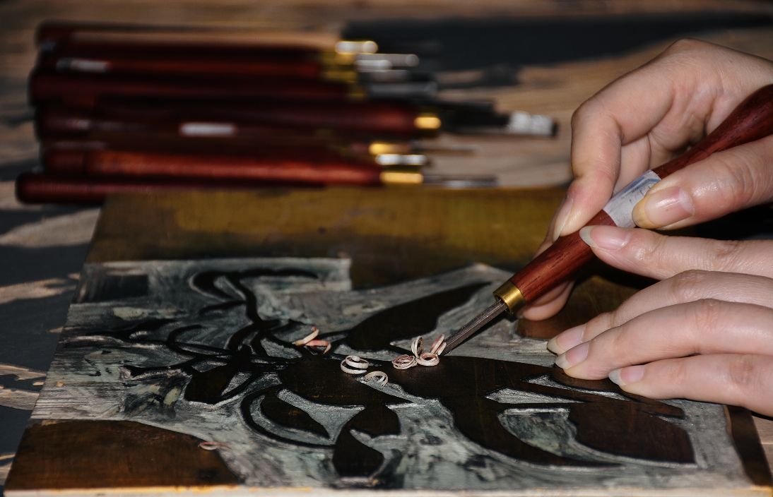 早在1985年,著名版画家周芜先生便在学校创立了全国首家以徽派版画艺术为研究主题的研究机构——徽派版画艺术研究所。三十多年后,郭益接过传承火种,成功申报安徽省中华优秀传统文化传承基地。