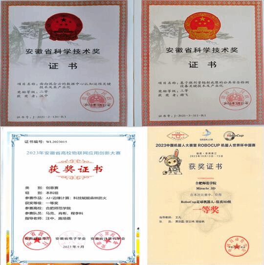 人工智能专业服务于安徽省十大新兴产业,形成自然语言处理、计算机视觉、计算机语音技术、智能机器人技术四个研究方向。近年来不断服务于地方产业发展,获批安徽省智能安检技术工程研究中心,荣获安徽省科技进步二等奖1项、三等奖1项。人工智能专业注重交叉研究,与心理学等学科成立青少年心理健康与危机智能干预安徽省哲学社会科学重点实验室,成立智慧医疗健康研究团队,进行医工交叉研究。人工智能专业结合学校应用型本科高校的办学定位,培养应用型人才,积极与科大讯飞等企业开展产学研合作,建立大学生实践教学基地。以竞赛为抓手,以赛促学,大力提高人工智能专业学生的实践与创新能力。近年来,多次在RoboCup机器人世界杯、中国机器人大赛、安徽省人工智能与大数据竞赛等国内外比赛中获冠亚军、一等奖等优异成绩。为了保障人工智能专业教学和科研需求,先后投资600多万元建立了华为AI实验平台和高性能计算中心。