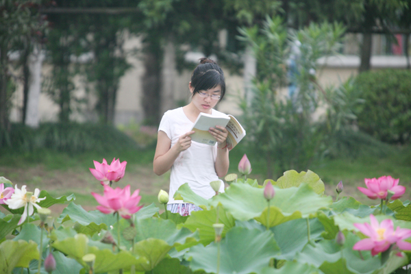 映日荷花伴晨读